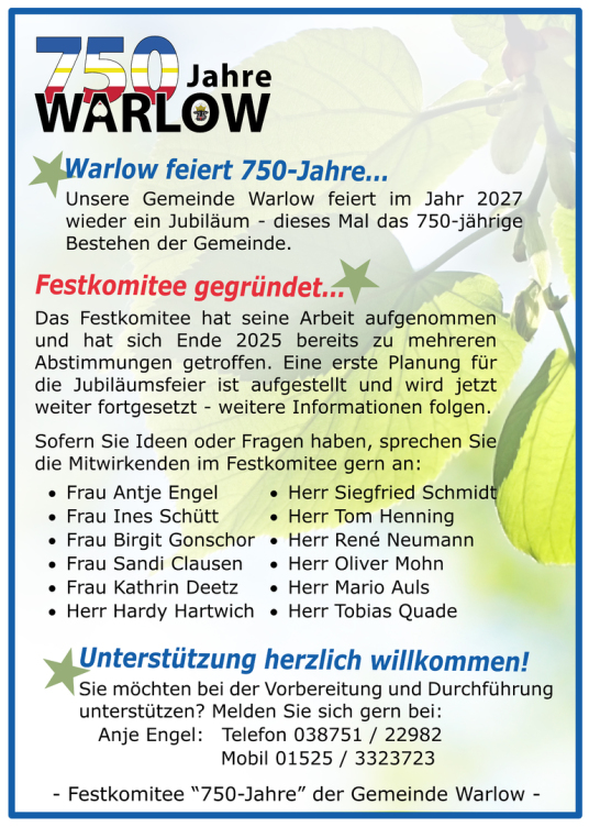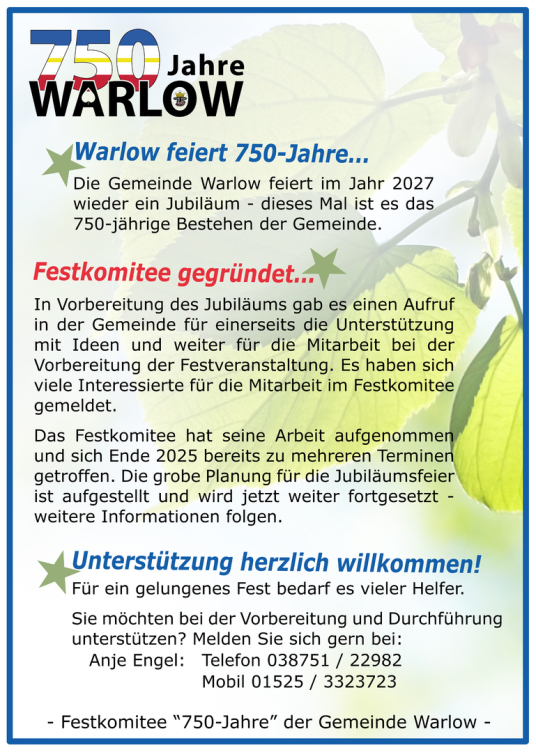 Infos "750 Jahre Warlow"